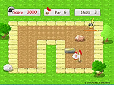Here we play a new game; chicken-mini-golf. Choose which direction to hit the ball with the arrows. Complete each course with the least amount of errors possible committed.
