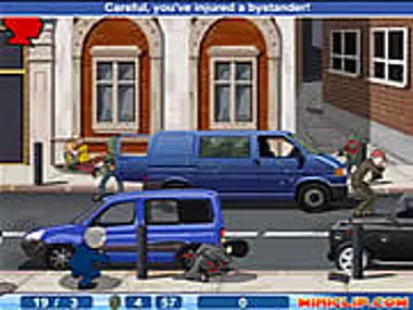 You are President Bush and you must protect the Queen against the baddies that hunts her down. You must also be aware that there are innocent people around that you wouldn't wanna gun down. Good luck and have fun!