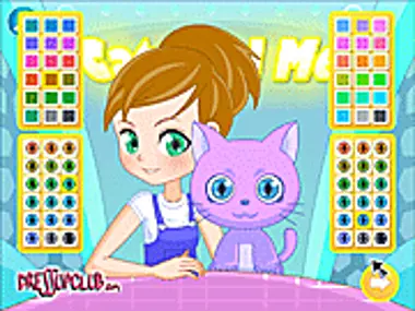 Utiliza el botón del ratón para pulsar los botones. Cada botón cambia uno (o más) elementos. Comenzando con los ojos y el peinado de la chica. El pelaje del gato. Esmalte de uñas para la chica. Color de uñas para el gato. Y finalmente seleccionas la ropa para ambos.