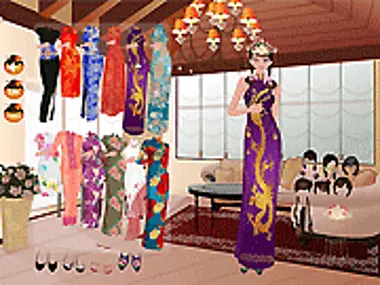 A chinese bride has traditional sets of dresses worn for the marriage.Select which one fits best for her.
