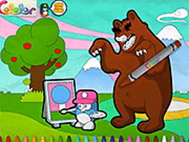 Si Akainik na penguin ay nagpipinta ng isa pang kahanga-hangang likha, hindi alintana ang nagkukubling oso sa likod niya. Ipinta ang buong larawan at masdan ang katapusan ng kuwento.