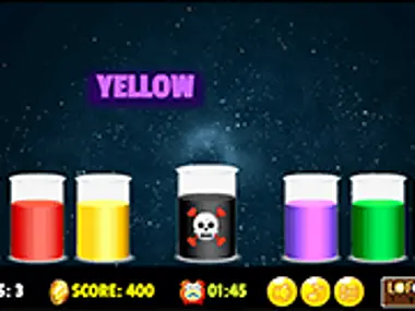 Kulay na Palaisipan - Basahin ang salita at i-click ang balde na may kulay na ang pangalan ay nahuhulog mula sa kalangitan. Napakainteresanteng laro, sa larong ito matututunan mo ang mga pangalan ng mga kulay. Basahin nang mabuti ang salita, ang salita ay maaaring iba't ibang kulay upang malito ka at i-click ang tamang balde.