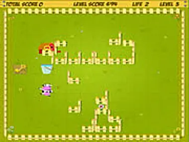 Help the cow reach the barn in shortest time possible. When the level points reach zero you will lose a life. You have 3 lives to finish the game.