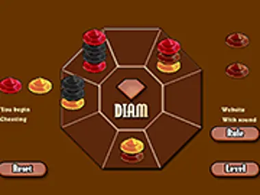Diam is an exciting puzzle game where the goal is you need place 2 pawns with identical colors and height on 2 diametrically opposed spaces.