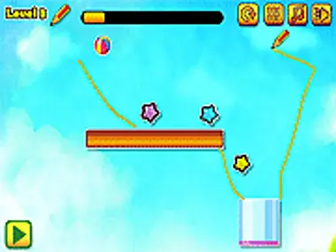 Draw a line that the ball will roll on or bounce off of. Get the stars & get to the container.