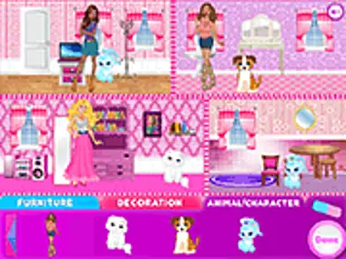 Lumipat na sa Barbie Dreamhouse at tulungan siyang magdisenyo ng kanyang bagong tahanan. Pumili ng klasiko o moderno na panloob na muwebles, iba't ibang disenyo at estilo ng interior. May ganap kang kontrol kung alin sa mga silid ang magiging sala, kwarto, banyo, kusina... Ang ilang bagay ay maaaring ikagulat mo kapag iginalaw mo ang mouse sa mga ito. Paunlarin ang iyong mga malikhaing kasanayan at magsaya sa kamangha-manghang larong ito ng disenyo ng interior.