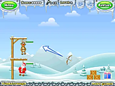 Fire limited arrows at the ropes that are hanging Santa, elves, & reindeer. Hurry they're choking!