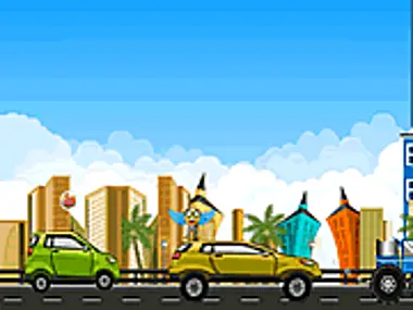 Make the smiley bird to jump successfully from the cars by using the mouse control. You will be taken to the next level once you accumlate 70 points. As you click to send the smiley bird up, you can also release the mouse to make it to get down. While the bird travels down, you send it upwards. Collect bonuses by consuming the fruits that pass by when fly above. You need to try again if you fail by hitting the ground or by striking at the eagles during the jumps.