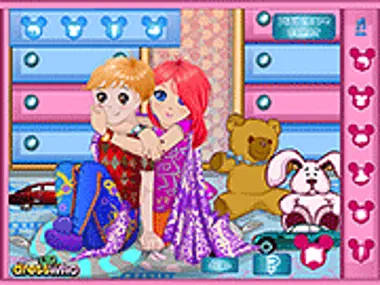 C'è un temporale fuori che ha causato l'annullamento dei tuoi piani con il tuo ragazzo al parco. =( Il tuo ragazzo suggerisce di rimanere a casa a guardare film Disney. Che bella idea! Prendi la tua coperta preferita perché farà freddo. Vesti te e il tuo ragazzo in questo grazioso piccolo gioco di vestire. Puoi anche invitare i tuoi peluche più carini a guardare il film con te! Che bel modo di trascorrere una giornata di pioggia!