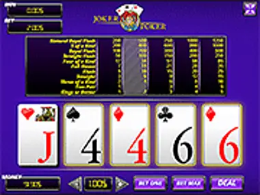 Ang Joker Poker ay isang nakakatuwang online card game na pinagsasama ang mga elemento ng tradisyonal na poker na may kapana-panabik na twist ng Joker card. Sa Joker Poker, ang standard na 52-card deck ay pinatingkad sa pagdaragdag ng Joker, na nagsisilbing wild card, may kakayahang palitan ang anumang iba pang card upang makalikha ng mga panalong kombinasyon. Nagdaragdag ito ng karagdagang stratehiya at kapanabikan sa laro, habang nagsisikap ang mga manlalaro na makagawa ng pinakamahusay na posibleng poker hands, mula sa matataas na pares hanggang sa royal flushes. Ang layunin ng Joker Poker ay makakuha ng pinakamataas na ranggo na poker hand na posible. Upang makapagsimula, naglalagay ng kanilang taya ang mga manlalaro at bibigyan ng five-card hand. Maaari silang pumili kung aling mga card ang pananatilihin, ang mga nakakatulong sa posibleng panalong kombinasyon, at itatapon ang iba. Pagkatapos ng pagtatapon, pinapalitan ng laro ang mga itinapong card, at susuriin ang huling hand upang matukoy ang bayad. Ang Joker Poker ay ang perpektong pagpipilian para sa isang kapana-panabik na online card game adventure. I-enjoy ang paglalaro ng card poker game na ito dito sa Y8.com!