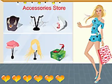 She's having a joyful shopping spree visiting the mall and choosing to buy new dress, new shoes, accessories and even a new hairstyle.