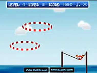 Sling your ball just right so that he goes through all the hoops without touching the rims.
