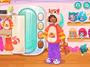 Maligayang pagdating sa "Kiddo Cute Costume," ang pinakabagong dagdag sa serye ng Kiddo Dressup! Samahan si Kiddo habang naghahanda siya para sa isang masayang pajama party sa gabi sa pagpili ng perpektong pajama costume. Sumisid sa mundo ng mga kaaya-aya at kaibig-ibig na kasuotan, mula sa malalambot na animal onesies hanggang sa makukulay na patterned pajamas. Hayaan mong sumikat ang iyong pagkamalikhain habang pinaghahalo-halo mo ang iba't ibang estilo para lumikha ng pinakamahusay na cute at kumportableng look para kay Kiddo. Humanda nang magsaya sa pajama party sa "Kiddo Cute Costume"!