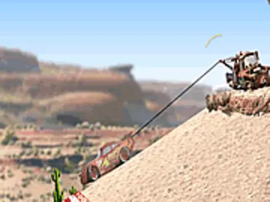 Pick your angle and power to throw the tow line to the stuck car just right.