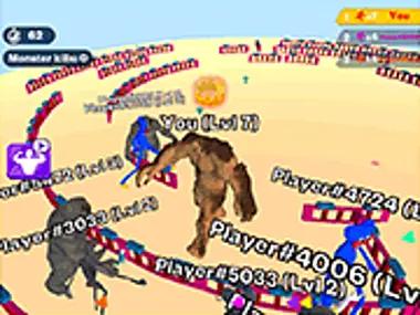 Monsters io - Isang epikong battle royale game na may mga halimaw. Kailangan mong maging ang pinakamahusay na manlalaro sa io game. Mag-unlock ng mga bagong karakter at bumili ng mga bagong upgrade. Laruin itong nakakatuwang 3D io game sa Y8 at hulihin ang lahat ng kalaban upang maging ang nagwagi. Sumali na at maglaro sa iba't ibang random na lugar ng laro. Magpakasaya!