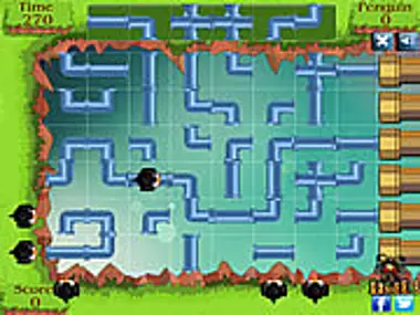 Tu objetivo es ensamblar correctamente todas las piezas de tubería, creando un camino para que los pingüinos lleguen a salvo a su destino. Haz que lleguen la mayor cantidad de pingüinos para obtener más puntos.