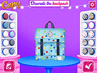 Blondie, Anya, Wendy at Diana ay sumasali sa isang kompetisyon. Gusto ng mga babae na magdisenyo ng pinakakyut, pinakamaganda, at pinakanatatanging backpack at lahat sila ay gustong maging panalo. At ngayong nagsimula na ang eskuwela, tiyak na makakaakit ng maraming atensyon ang isang kakaiba at kyut na backpack, kaya bakit hindi mo tulungan ang mga babae na kumpletuhin ang hamong ito? Bukod sa pagdidisenyo ng hugis at kulay ng backpack, maaari ka ring pumili mula sa maraming sticker para i-personalize ito. Para mas maging masaya pa ang larong ito, maaari mong bihisan ang bawat prinsesa ng pinakakyut na mga damit. Magsaya ka!