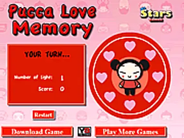 Tulungan si Pucca na matandaan ang pagkakasunod-sunod ng kulay sa pag-click sa mga puso. Subukang makuha ang pinakamataas na puntos. Kung magkamali ka, kailangan mong magsimulang muli.