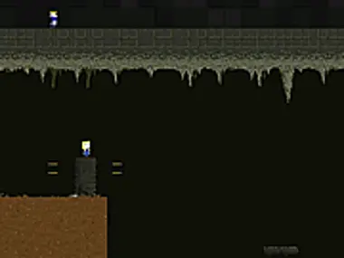 A difficult game of jumping over holes and dodging falling rocks and shooting boobie traps.