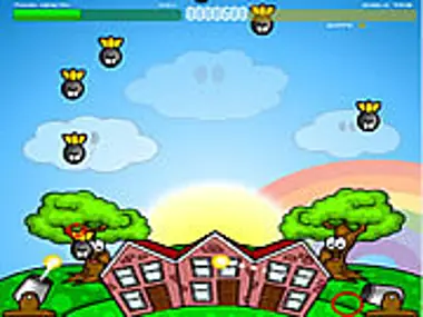Shoot 2 fireballs at the dropping bombs. Fireballs explode when two hit together.