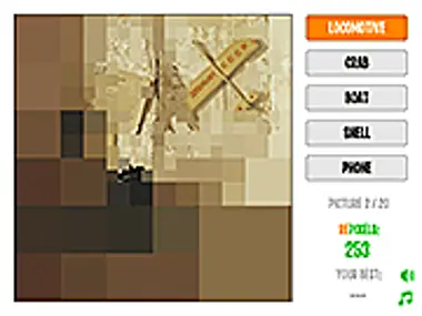 Hulaan ang nakatagong larawan, i-repixelate ito. Subukang mag-repixel nang pinakakakaunti hangga't maaari para makuha ang pinakamahusay na resulta! I-click ang larawan para i-repixelate ang isang bahagi nito. Pindutin ang mouse button at igalaw para mas marami at mas mabilis na i-repixelate.