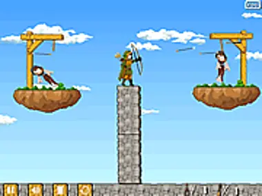 Similar to Gibbets, fire your arrow to loose the noose. Don't hit those that are being hung.