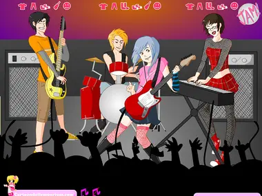 This cool guys are playing in their high school rock band and they are very talented musicians. The public loves them and their original songs. They play electric guitars, keyboards and drums and they are very good instrumentalists. The leader of the band is a cool girl who plays guitar and has a wonderful voice. They all want to become famous stars. They also have very cool stage clothes and they became trend-setters in their high school. Help the band prepare for a new show! Dress them up as cool as you can! Choose the clothes you like best for each of them! You can also change the color of their guitars the way you want. Let's rock!