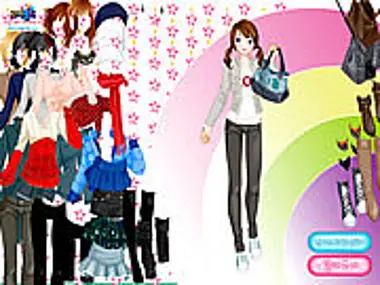 Help the girl choose a warm cap, scarf and jacket.