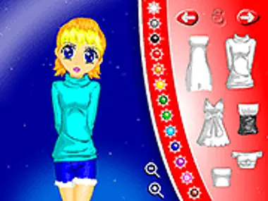 Dress up the anime girl for New Years. Click what you want her to wear, and change the colors with the balls of colors.