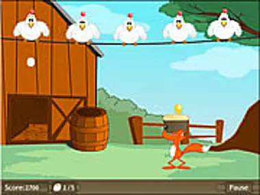 This sly fox steals eggs, it penetrated into the hen house and catch eggs, and you will need all your skill to prevent the eggs drop. Each caught egg brings you 100 scores, the eggs falls quicker and quicker. If five eggs are drop, the game is over.