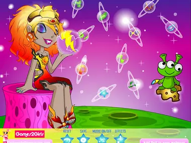 A cool dress-up game with space theme for a nice little girl.