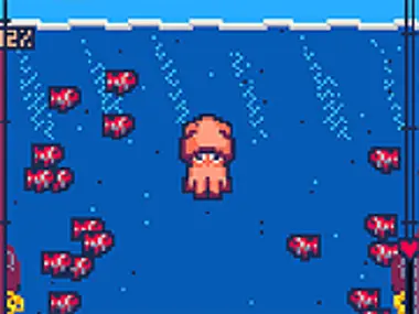 Tulungan ang pusit na marating ang ibabaw, iwasan ang basura sa dagat habang lumalangoy, at kumain ng isda para mapuno ulit ang health bar. Pindutin ang X para lumangoy pataas, at ang Arrow Keys para gumalaw pakaliwa at pakanan. Pindutin nang matagal ang Down Arrow para kainin ang maliliit na isda kapag ikaw ay nasa ibabaw nila. Ang pagkain ng isda ay magpapataas ng iyong score at pupunuin ang iyong ink attack special move. Kapag puno na ito, pindutin ang Z para ilabas ito!