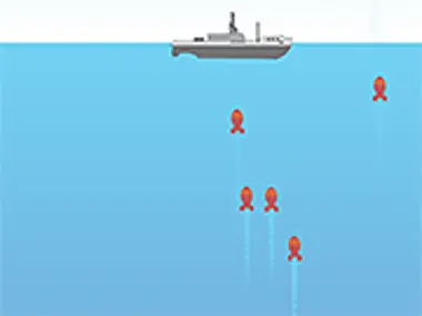 Ang digmaang submarino ay isang laro kung saan kailangan mong kontrolin ang isang barko at magpaputok ng mga bomba at granada dito mula sa mga submarino na nasa tubig sa ilalim ng barko, at babarilin ka rin ng mga rocket at torpedo. Kailangan mong iwasan ang mga torpedo at sirain ang pinakamaraming submarino ng kalaban na kaya mo.