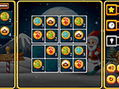 Interesting Sudoku Christmas education game. You main goal is to fill a selected grid with xmas items so that each column, each row, and each of the respective sub grids that compose the grid contain all of the items without repeating anyone. Play this fun Christmas game and improve your math skills. Have fun!