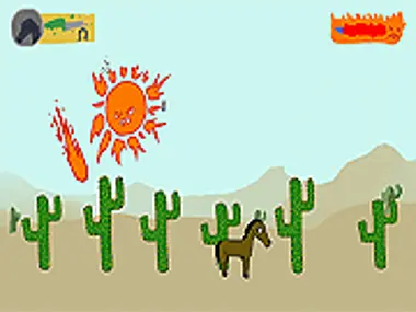 Kick The Cacti to shoot spines out of them. Avoid fireballs.