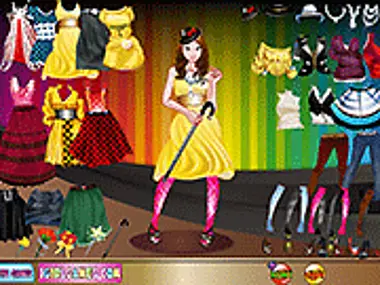 Dress up the singing girl so she looks fashion and hot on the stage.