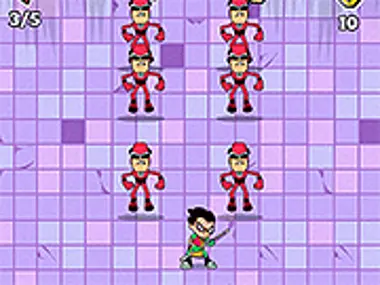 Magsisimula ka sa pagprotekta ng Titan Tower, kung saan kailangan ni Robin ang iyong tulong upang harapin ang rumaragasang dami ng clone ng pink guy na umaatake sa iyo, nang hindi mo pinapalampas ang masyadong maraming kontrabida, o matatalo ka. Gamitin ang mouse upang i-swipe sa direksyong gusto mong atakihin ni Robin gamit ang kanyang patpat, at makaligtas hanggang sa matapos ang misyon upang umabante sa susunod, kung saan may bagong bayani kang magiging para sa bawat isa, at bagong kontrabida na tatalunin.