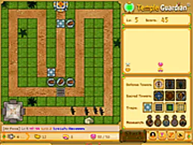 Construct defenses around the temple. Simple towers will do for the first few waves but you should build some sacred towers fast, or you’ll be overrun before you know it.