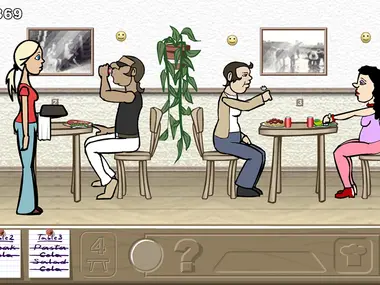 You are a waitress and your job is to serve the client! Try to take orders as quickly as possible! Don't forget to clean the tables!
