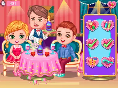 Maligayang araw ng mga puso! Pero medyo nababato ang mag-asawang ito sa loob ng isang napakagarang restaurant. Gusto nilang libangin ang kanilang sarili at ano pa ba ang mas magandang paraan kaysa gumawa ng kalokohan sa loob ng restaurant. Tulungan silang gawin ang kanilang maliliit na aktibidad at huwag silang pahuli sa waiter!