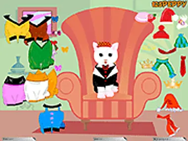 Snowball the cat loves when you dress her up! What costume will you give her today? Try the outfits and accessories on Snowball using your mouse.